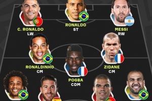 本泽马评最佳11人:大罗、C罗、梅西领衔锋线,小罗、齐达内在列